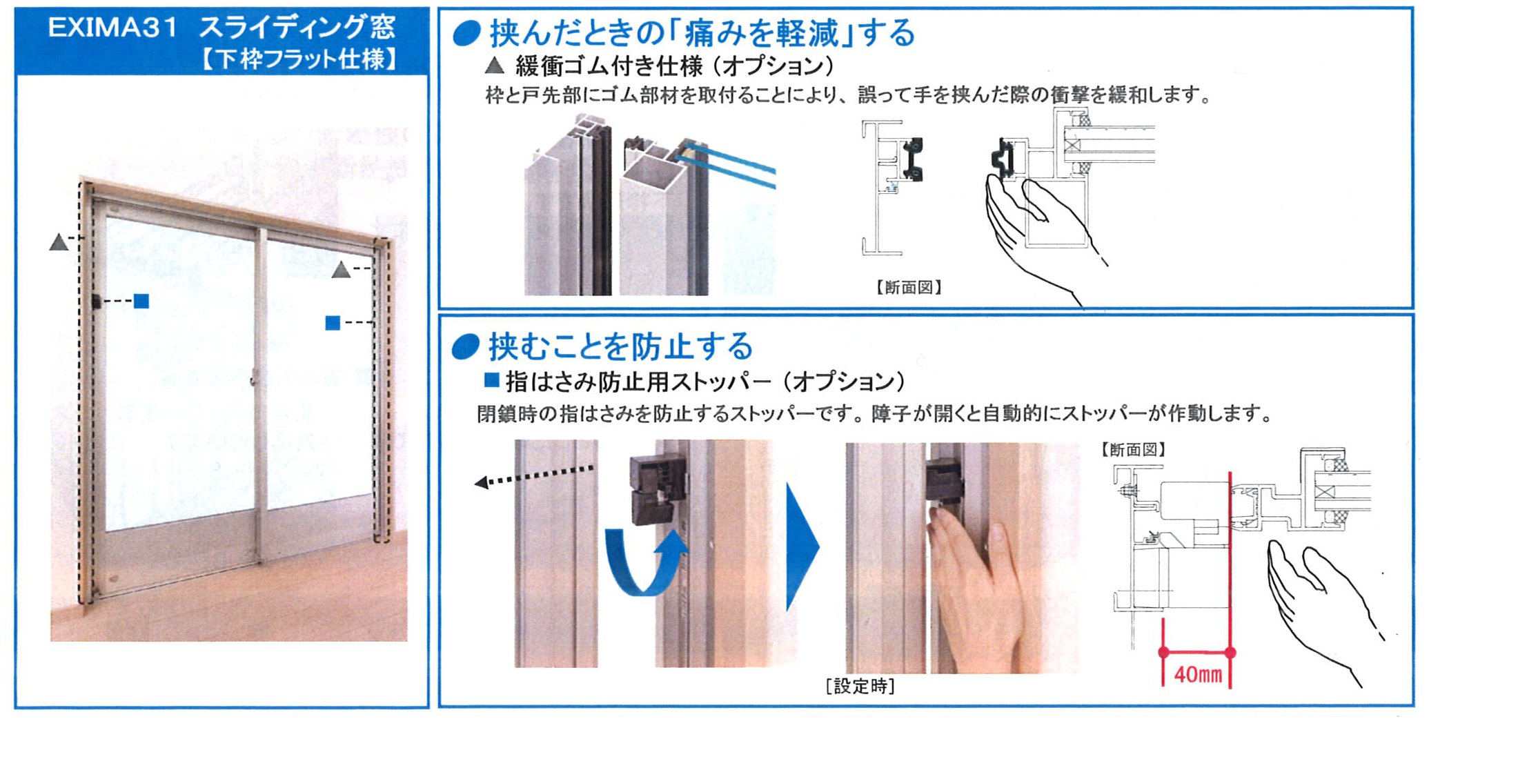 開閉の操作も、指はさみ防止のストッパーなどもありました。