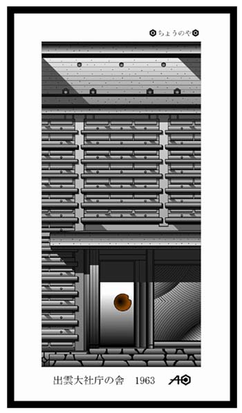 今回の戯漫劇詩は、好きな建物シリーズ【出雲大社庁の舎(しょうのや)】のエレベーションカット・パソコンスケッチ。