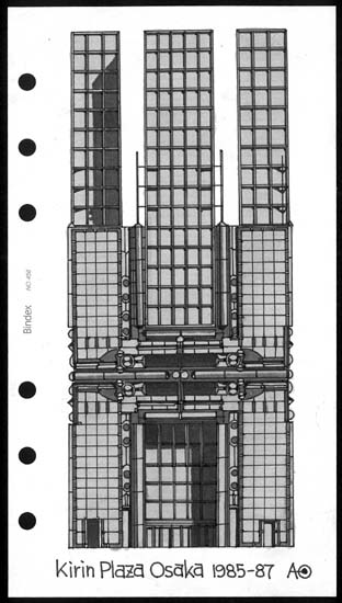 今回のPBSは、KPO:キリンプラザ大阪(1987年)のエレベーション手描スケッチ。