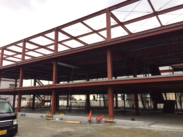 鉄骨の建て方が終わりこれから屋根・ALC工事と続いています。