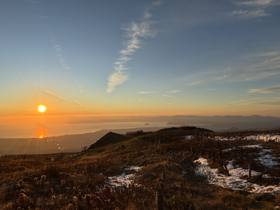 夕日が沈むのを見てから暗くなる前に中央登山道を通って急いで下山。