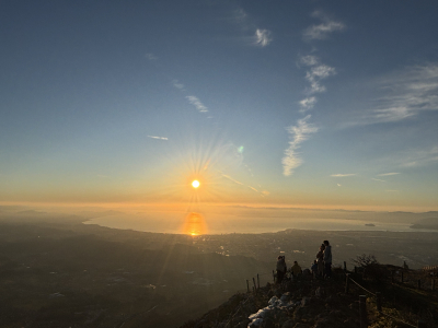 夕日が沈むのを見てから暗くなる前に中央登山道を通って急いで下山。